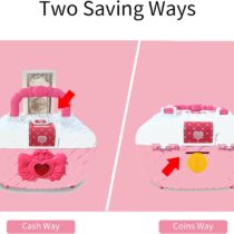 Piggy Bank for Kids, Electronic Money Bank Safe Saving Box ATM Machine with Fingerprint Password, Real Cash Coin Can Handbag Shaped Safe Locks Music Money Piggy Box, ZP19