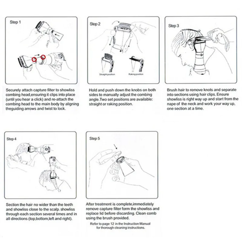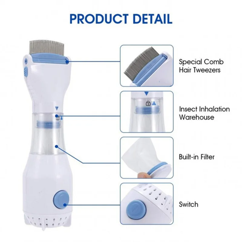 - Provides Immediate Visible Results: Head lice and eggs extracted from the head are immediately sucked into a capture filter housed within the LED-illuminated chamber, providing visible results as you comb the hair.